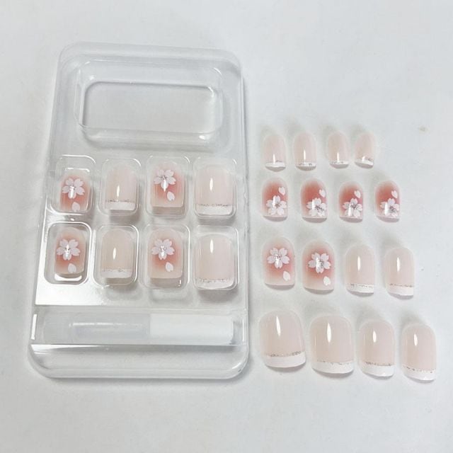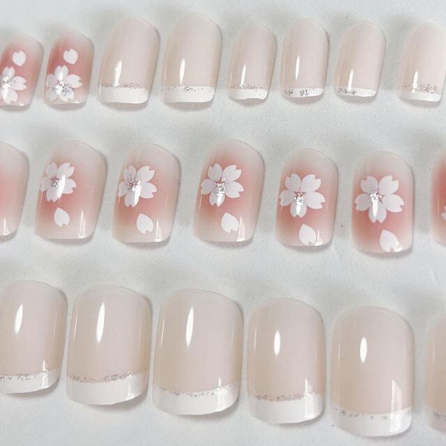 商品名:ネイルチップ ショート シンプル はな デコチップ ピンク つけ爪 ネイルアート アートチップ オーバル ウエディン(メール便送料無料)