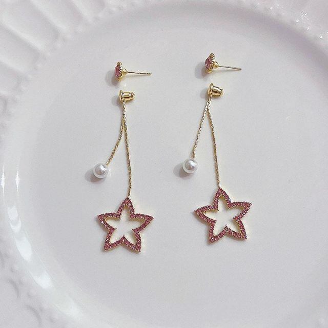 商品名:パール ピアス 星 ハート レディース 揺れる アクセサリー かわいい キラキラ(メール便送料無料)