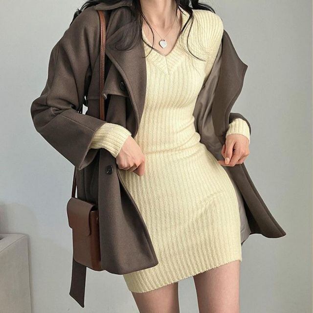 ショート丈タイトンプルなニットワンピース。