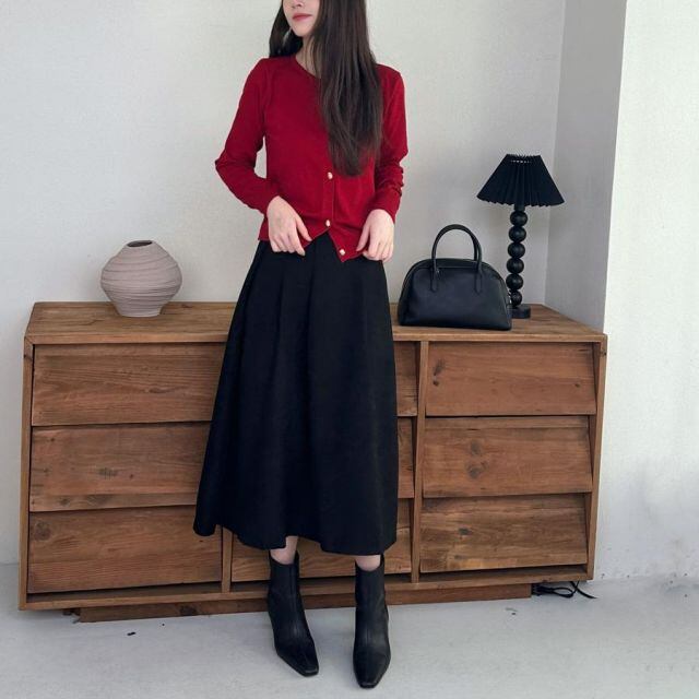 プリーツデザインで上品なウエストゴムスカート。
