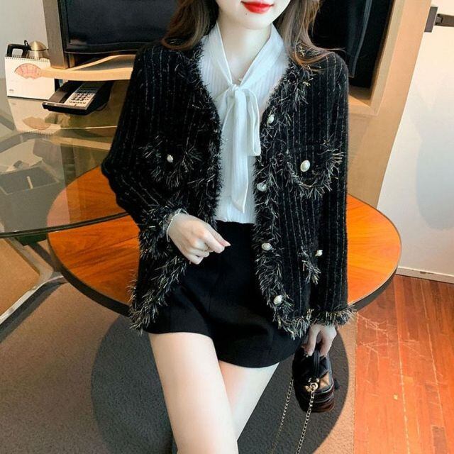 商品名:ツイードニット ジャケット ニットツイードボタンジャケット ニットカーディガン レディース 秋冬 長袖 ショット丈アウター 秋服 おしゃれ(宅急便のみ対応)