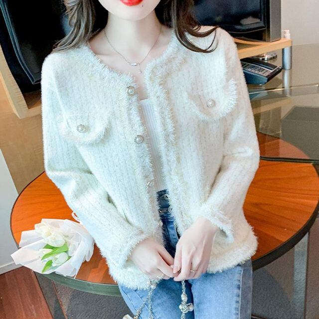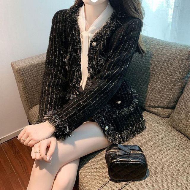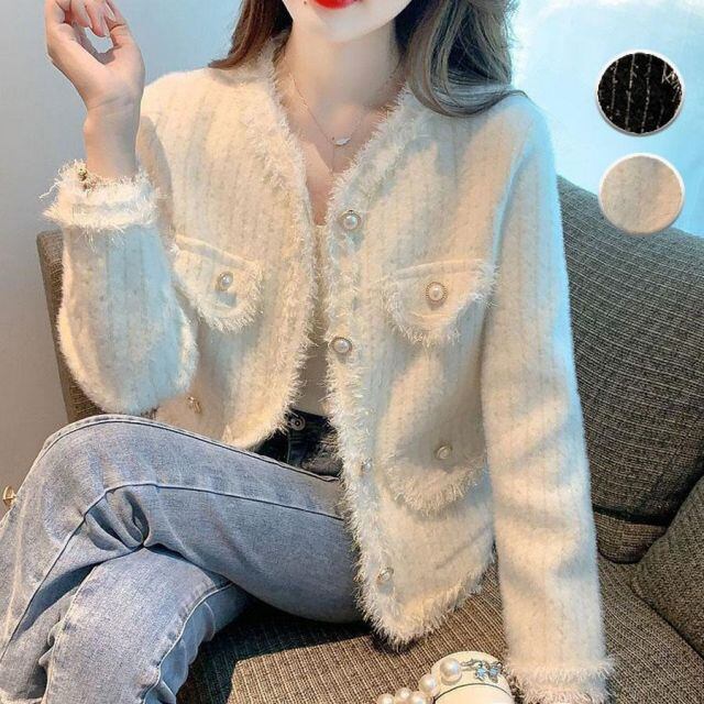 ツイードニット ジャケット ニットツイードボタンジャケット ニットカーディガン レディース 秋冬 長袖 ショット丈アウター 秋服 おしゃれ(宅急便のみ対応)