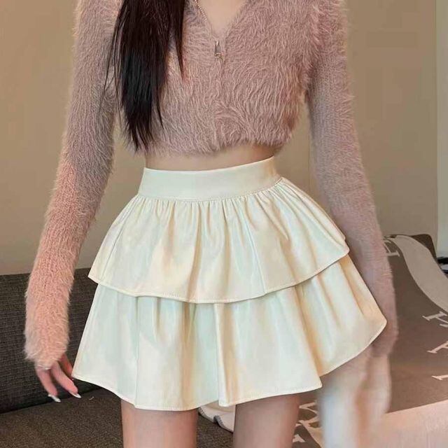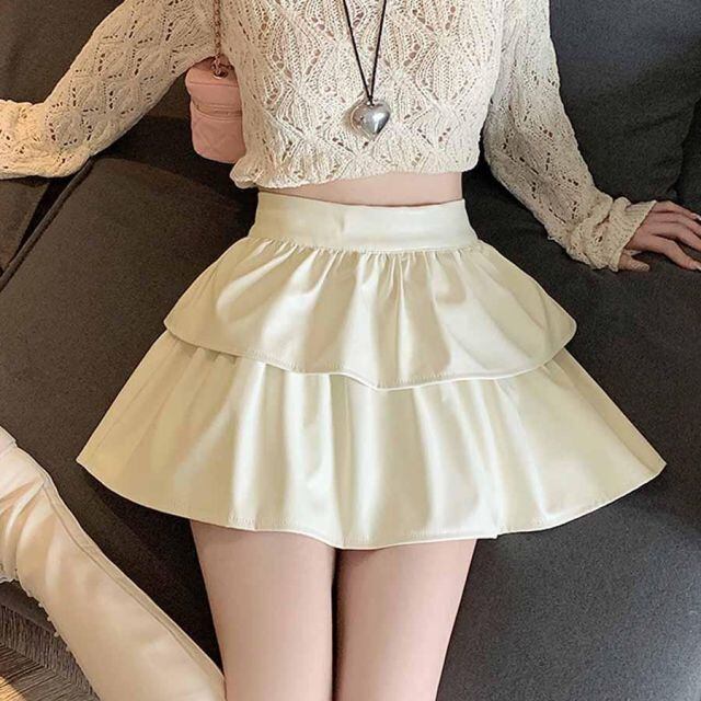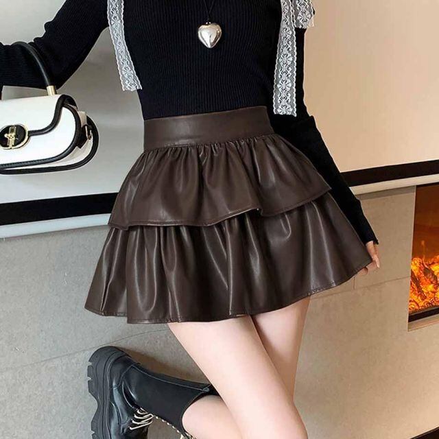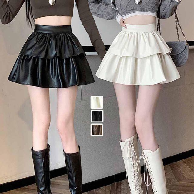 シンプルなデザインフェイクレザースカート。