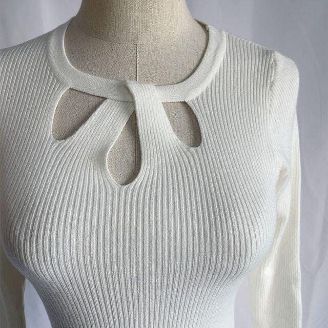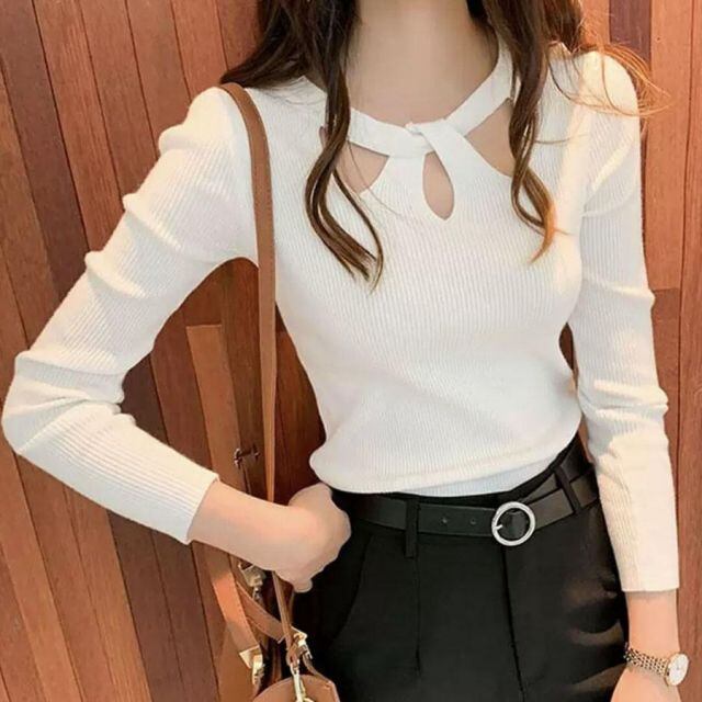 商品名:ニットトップス ツイスト ラウンドネック 薄手 細身 レディース トップス 韓国ファッション シンプル 通勤 オフィス 秋冬 ショート丈(メール便送料無料)