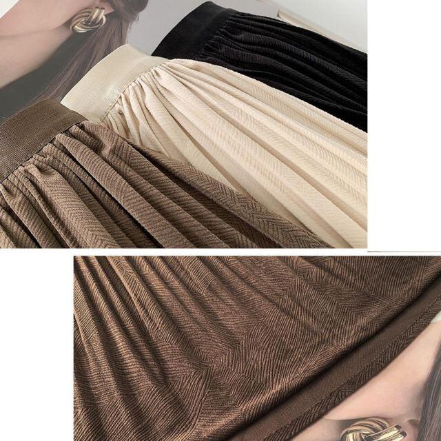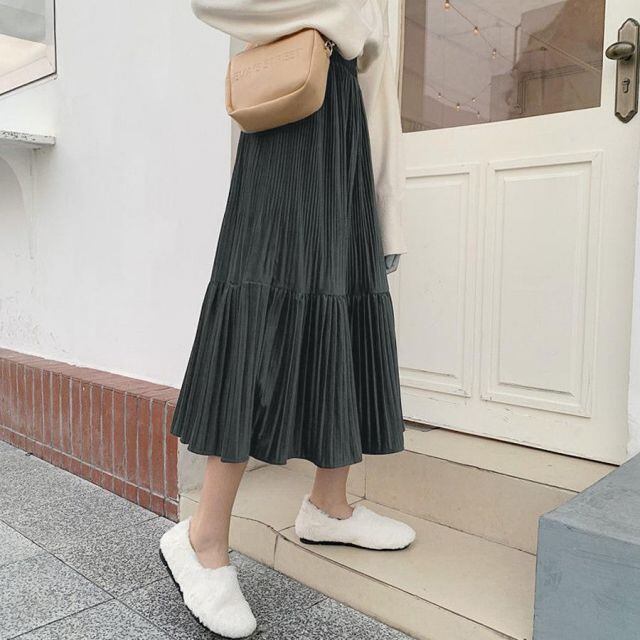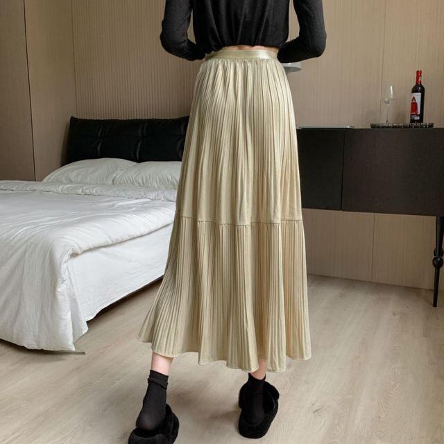 商品名:プリーツスカートロング黒 無地スカート ひざ下 フレアスカート ハイウェスト ボトムス 着痩せ 通勤 オシャレ Aラインスカート(メール便送料無料)