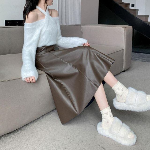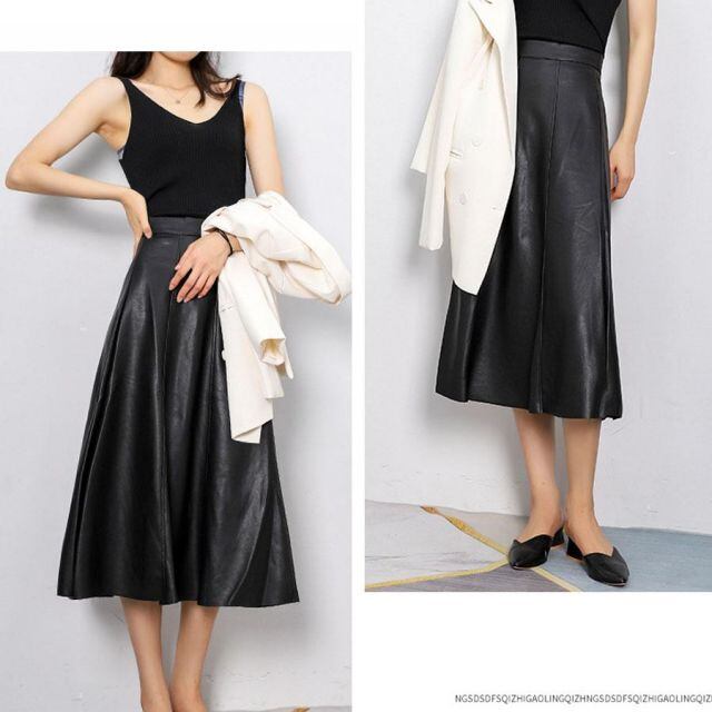 商品名:レザースカート レディース PUスカート ハイウエスト ロング Aラインスカート ロングスカート マキシ丈 フレアスカート ギャザースカート(メール便送料無料)