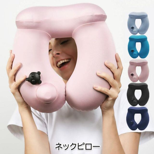 商品名:ネックピロー ポンプ式 飛行機 携帯枕 U型 エアーピロー プレス式膨らませる 収納袋一体型 自宅 首枕 ねっくぴろー バス 海外旅行(宅急便のみ対応)