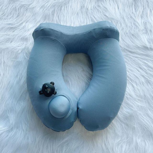 ネックピロー ポンプ式 飛行機 携帯枕 U型 エアーピロー プレス式膨らませる 収納袋一体型 自宅 首枕 ねっくぴろー バス 海外旅行(宅急便のみ対応)