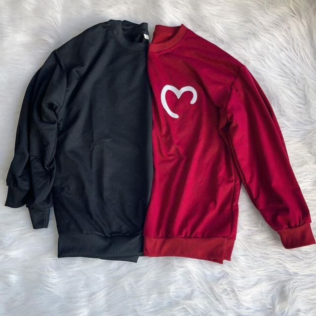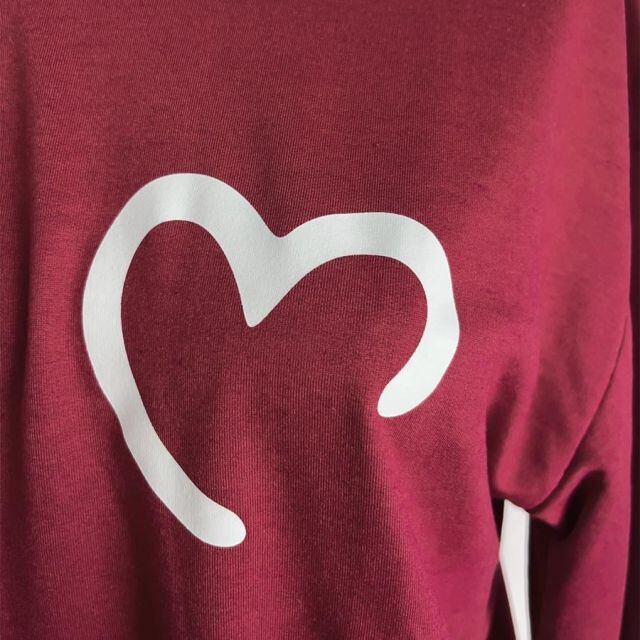 商品名:トレーナー tシャツ ハート レディース クールネック ショート丈長袖 プルオーバー コットン スウェットシャツ パーカー トップス 綿 丸首(メール便送料無料)