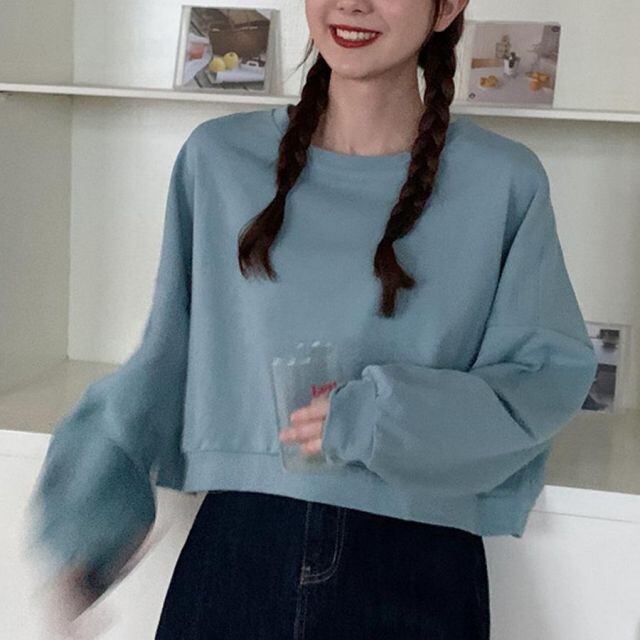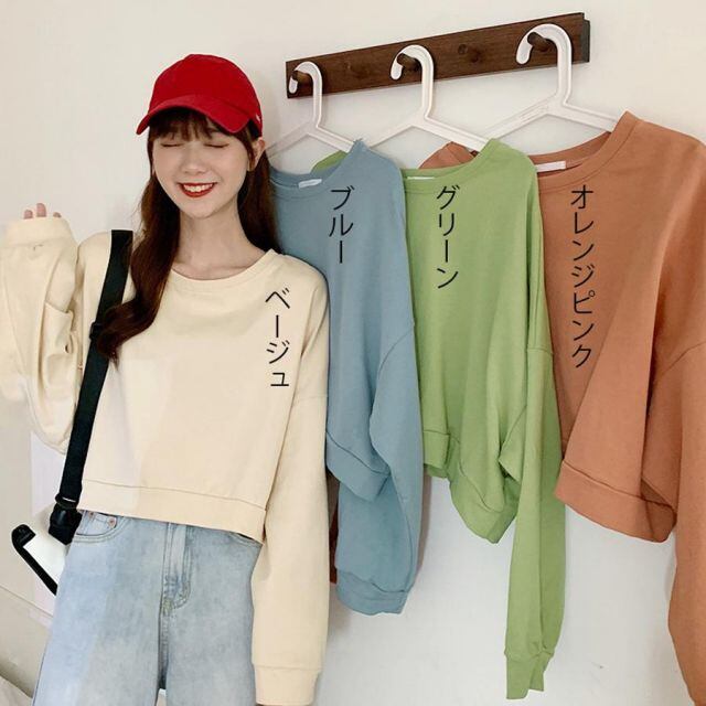 商品名:トレーナー レディース スウェット Tシャツ クールネック ショート丈 長袖 プルオーバー コットン スウェットシャツ パーカー トップス(メール便送料無料)