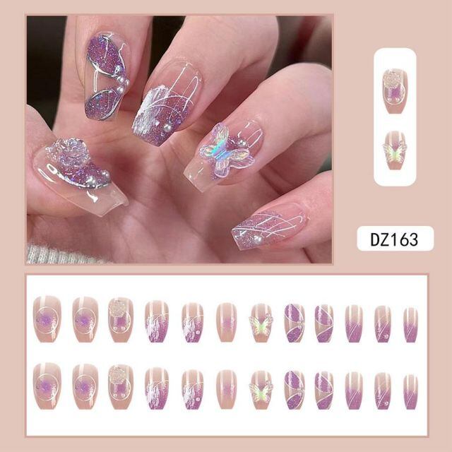 商品名:ネイルチップ ショート 蝶々 ブライダル つけ爪 ネイルアート アートチップ デコチップ オーバル ウエディン(メール便送料無料)