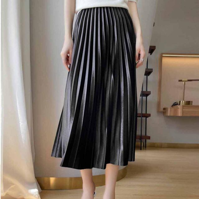 商品名:スカート ロング プリーツスカート 黒 無地スカート ひざ下 フレアスカート ハイウェスト ボトムス 着痩せ 通勤 オシャレ(メール便送料無料)