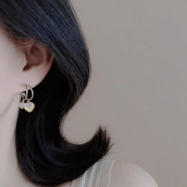 商品名:ピアス ハート キラキラ ビジューピアス ロングピアス ゴールド フープピアス きれいめ レディース 人気アクセサリー(メール便送料無料)