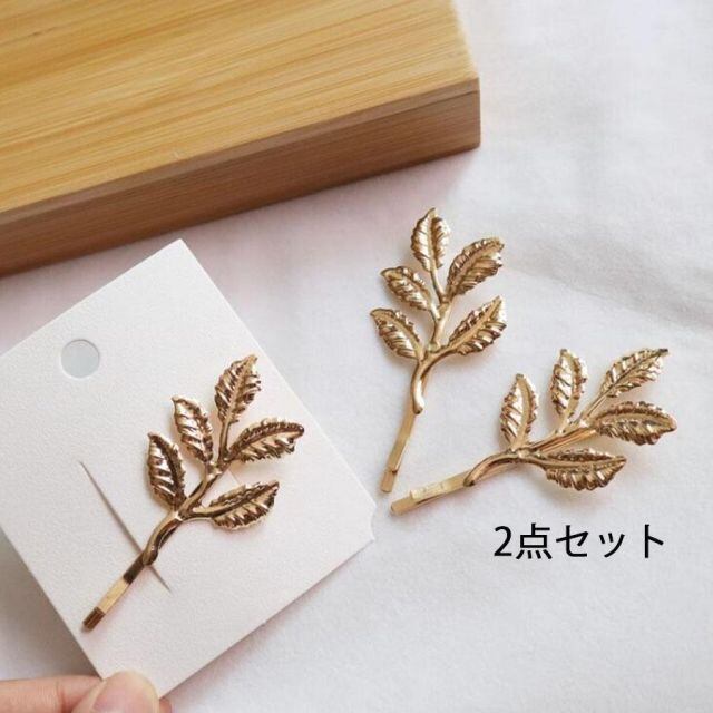 ヘアピン 2点セット ヘアアクセサリー 木の葉 シンプル(メール便送料無料)