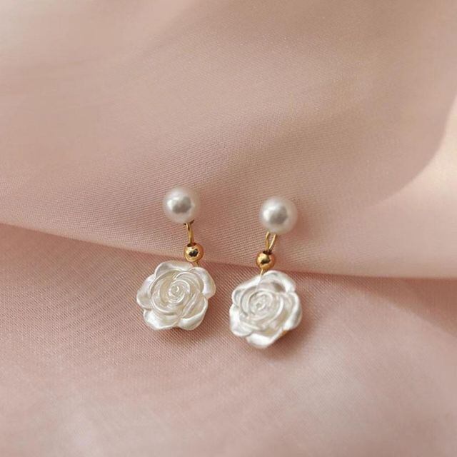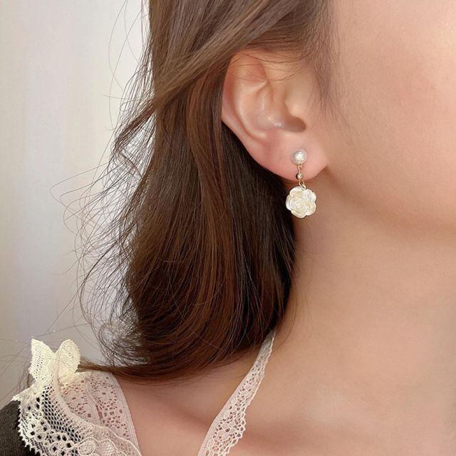 揺れる ピアス 花 パール ラインストーン 可愛い イヤリング人気アクセサリー レディース 韓国ファッション(メール便送料無料)