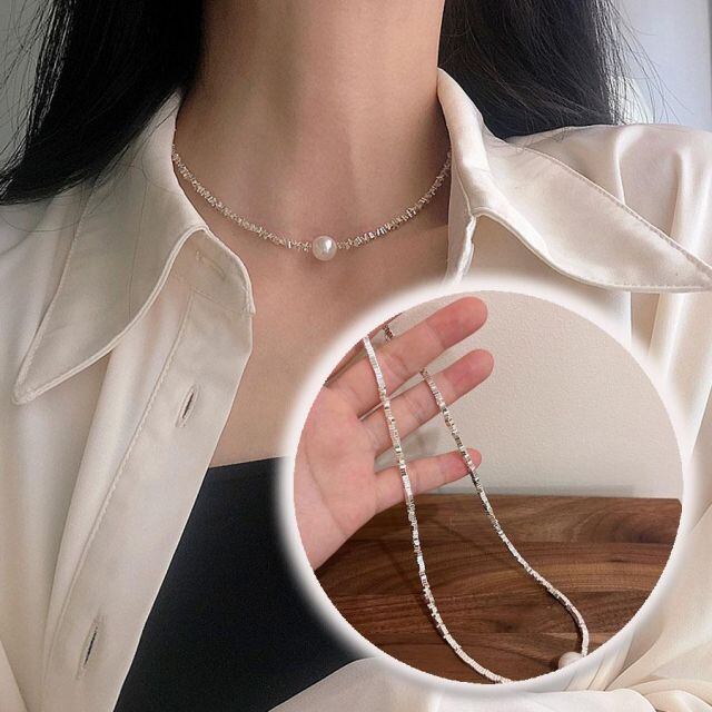 パールネックレス チョーカー フェイクパール ボリューム アクセサリー おしゃれ デイリー カジュアル 調節できる(メール便送料無料)
