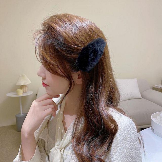 ファーカラー BIGオーバルヘアクリップ ヘアピン ヘアアクセサリー 大きめ ヘア留め 前髪 オシャレ プレゼント もこもこ(メール便送料無料)