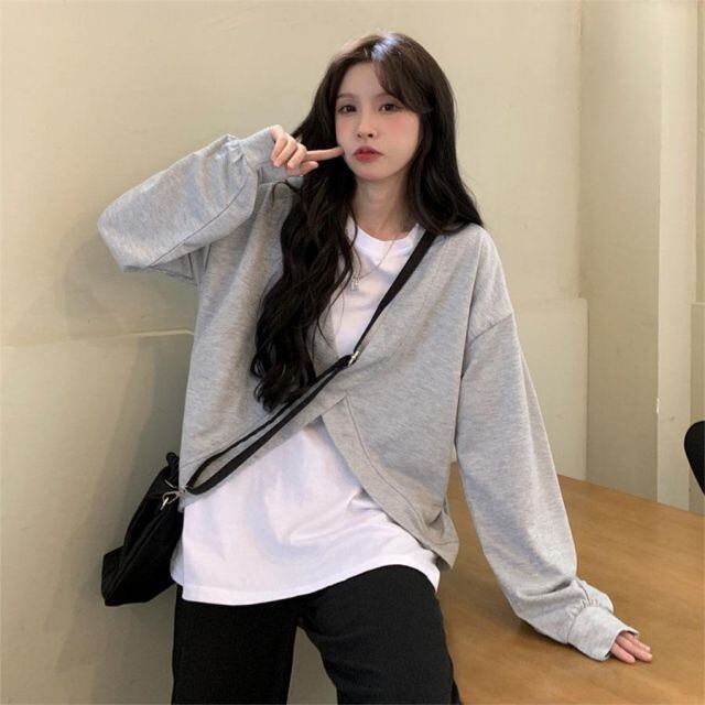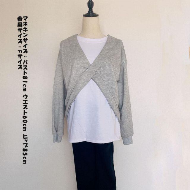 商品名:Tシャツ レイヤード 重ね着風 バーカー レディース カットソー 切り替え 長袖 秋 冬 韓国ファッション (メール便送料無料)