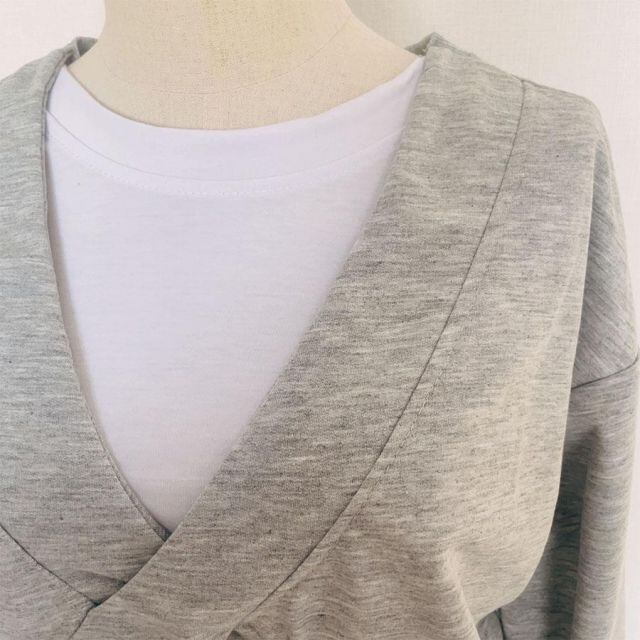 Tシャツ レイヤード 重ね着風 バーカー レディース カットソー 切り替え 長袖 秋 冬 韓国ファッション (メール便送料無料)