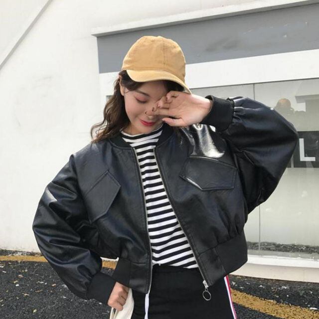 PUジャケット レディース 革ジャン レディースブルゾン レザー調韓国風アウター ショート丈(宅急便のみ対応)