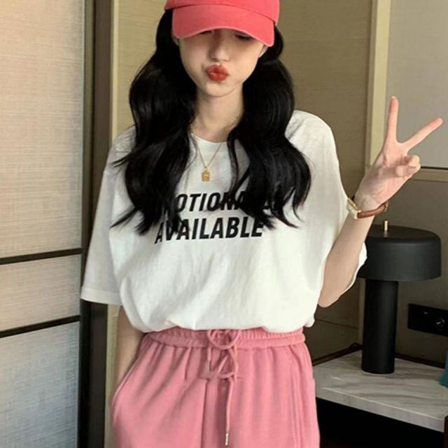 商品名:夏服 tシャツ ハート 半袖 カラーtシャツ 丸首 スポーツ カジュアル おしゃれ シンプル 体型カバー ホワイト(メール便送料無料)