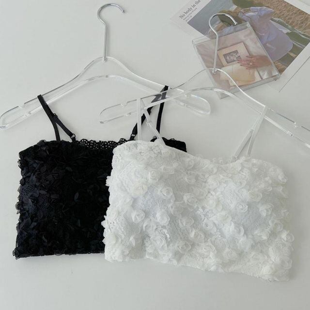 夏服 総レースキャミソール カップ付き 薄手 キャミ 花柄 レース 見せるインナー ブラ 黒 パット付 キャミ チューブトップ(メール便送料無料)