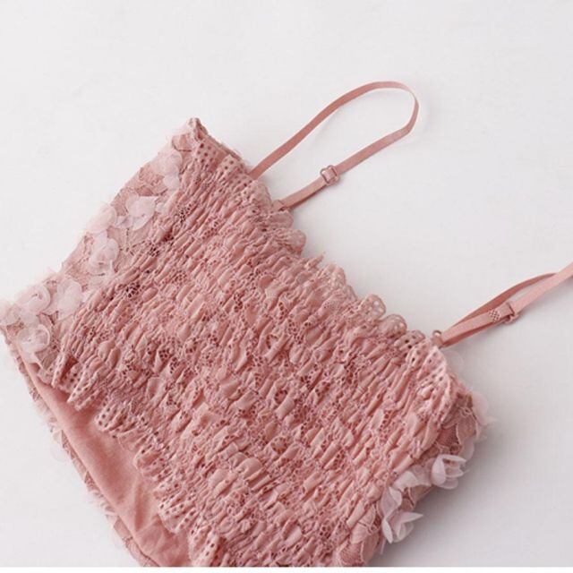 パット付花柄総レースキャミソール。