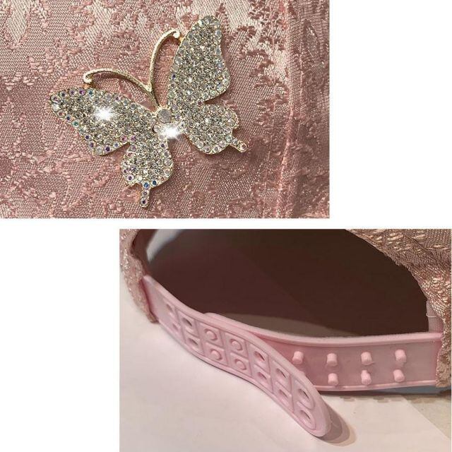 商品名:帽子 蝶々 キラキラキャップ レディース UVカット つば付カーブキャップ 帽子 スポーツ 無地 CAP おしゃれ 野球帽(宅急便のみ対応)
