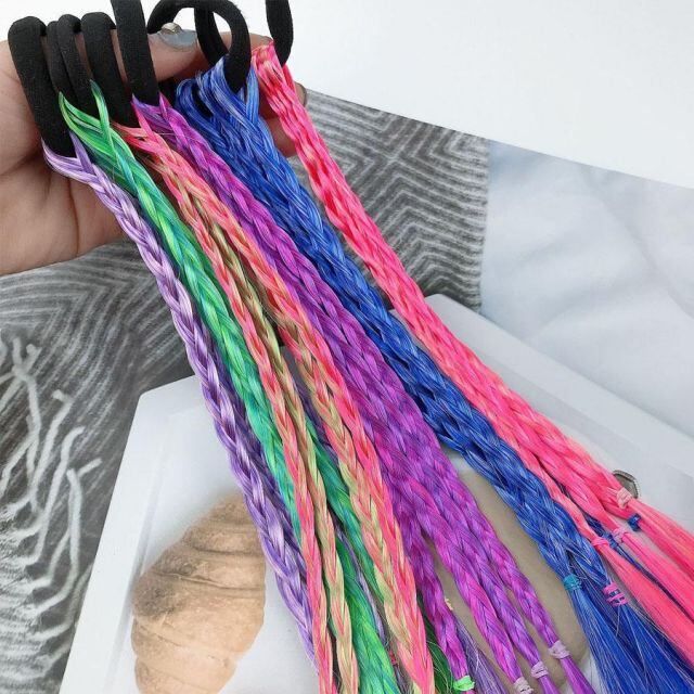 編み込みウィッグ ゴム付き 三つ編み エクステ カラフル編み込み ヘアゴム ウィッグ ポニーテール ダンスウィッグ つけ毛(メール便送料無料)