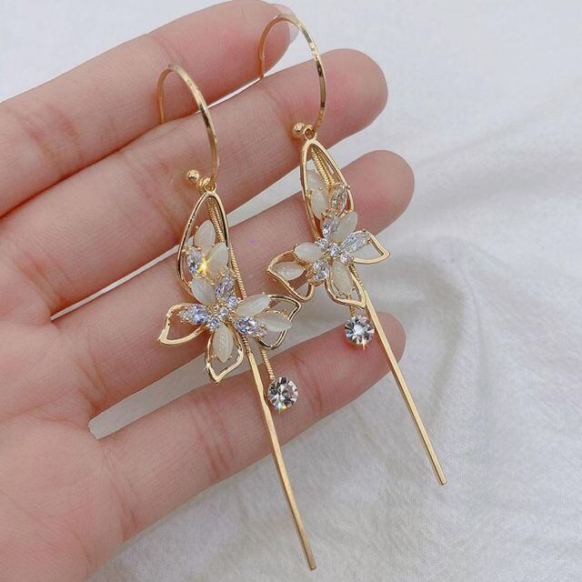 蝶々ピアス ロングピアス 蝶々 揺れる キラキラ 大ぶりピアス かわいい お洒落 輝く小顔効果(メール便送料無料)