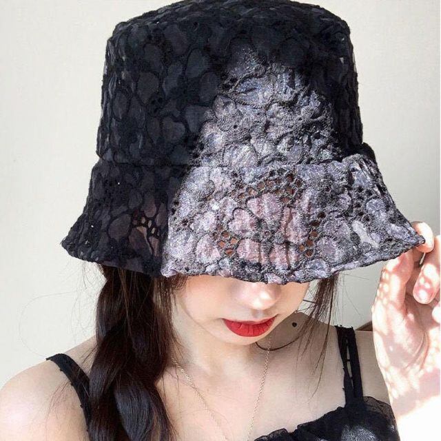 綺麗なフラワー刺繍総レースバケットハット。