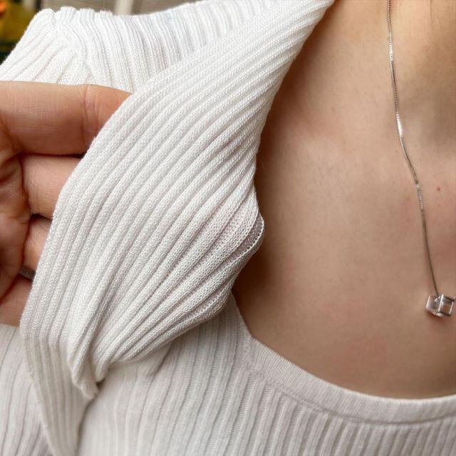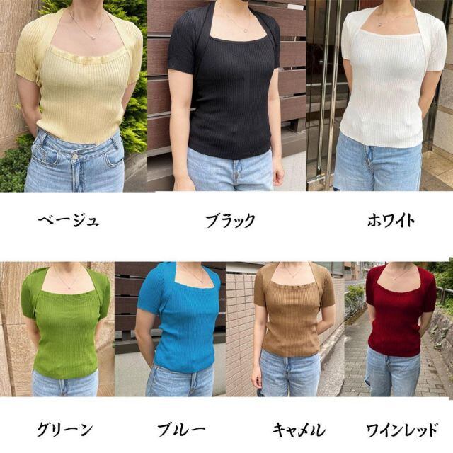 スクエアネックサマーニットトップス。