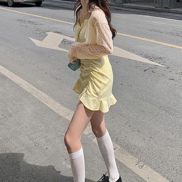 商品名:韓国ファッション サマーカーディガン 透かし編み 花柄Vネックカーディガン トップス 長袖 ショート丈 前開き(メール便送料無料)