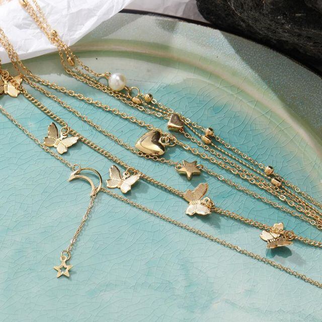 ネックレス 6本セット ペンダント レディース 重ね付け チェーンネックレス ペンダント シンプル ジュエリー おしゃれ(メール便送料無料)