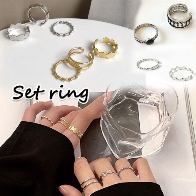 商品名:リング 指輪 レディース セットリング 重ねづけ 大人 上品 エレガント きれいめ カジュアル 華奢 シンプル フェミニン(メール便送料無料)