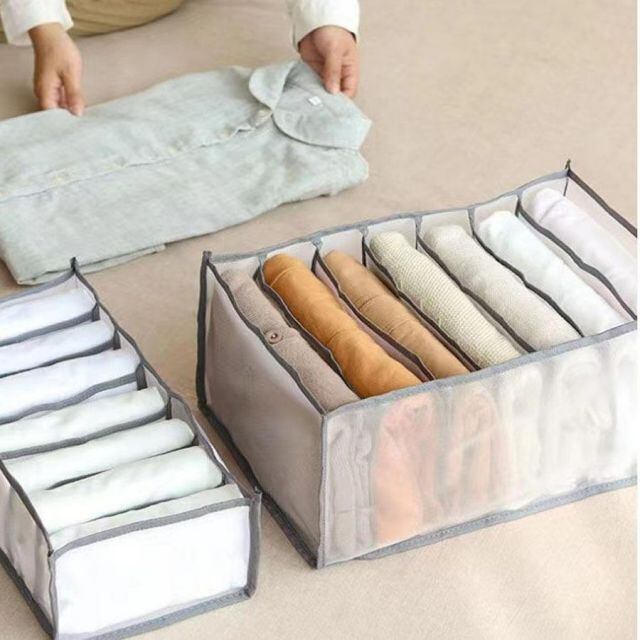 商品名:ズボン 収納ケース 仕切り 7マス 収納ボックス 収納 ジーンズ 衣類 仕切り付き 仕切り収納 下着 収納 整理 衣類収納(メール便送料無料)