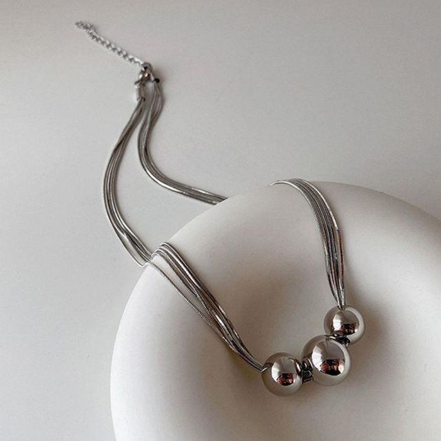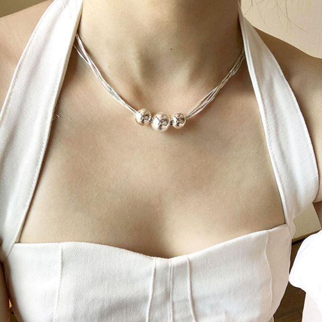 商品名:チェーンチョーカー 5連 ネックレス ボリューム ボールチェーンネックレス アクセサリー 結婚式(メール便送料無料)