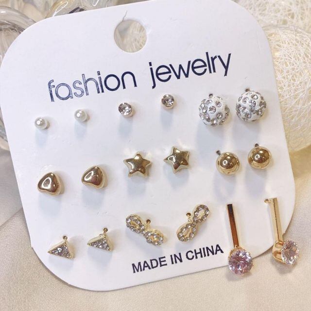 パール・ストーン・メタルボールのシンプルピアス9点セット。