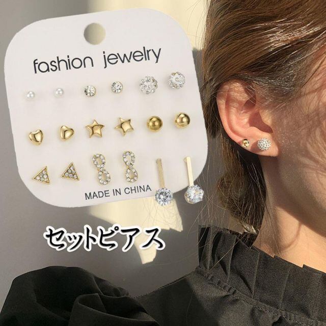 商品名:ピアス セット 9点セットピアス フープピアス スタッドピアス パール ストーン ボール シンプル 小さめ 定番 おしゃれ マルチピアス(メール便送料無料)