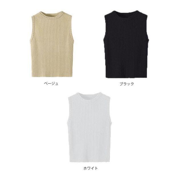 サマーニット インナー ニットキャミソール レディース リブニットタンクトップ ノースリーブTシャツ(メール便送料無料)