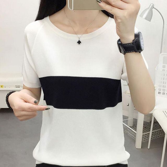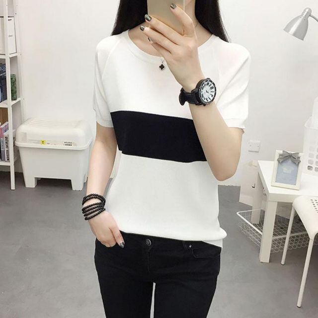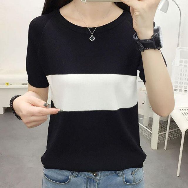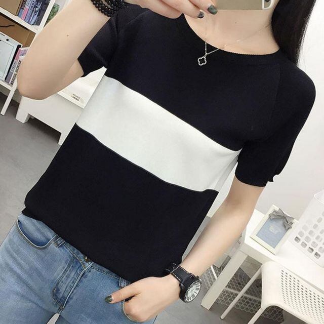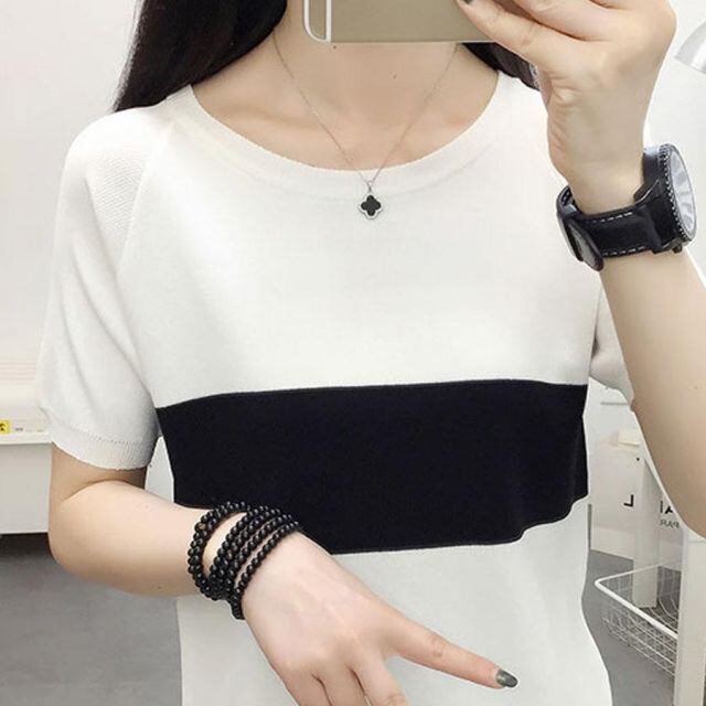 商品名:サマーニット レディース セーター 半袖セーター ニットセーター 半袖 オフィス 通勤 通学 すっきり カジュアル トップス(メール便送料無料)
