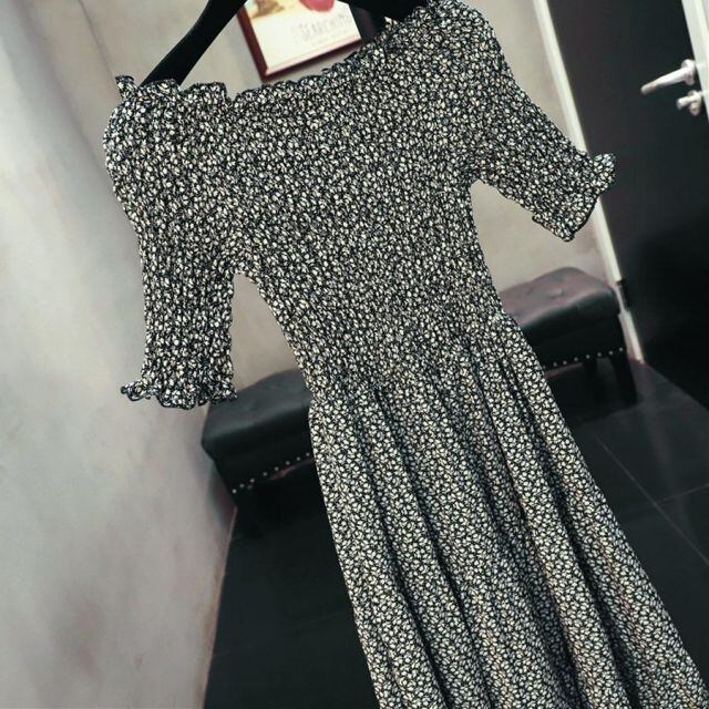 商品名:ワンピース オフショルダー ロングフレアワンピース レディース ひざ下 大人 きれいめ 無地 おしゃれ オフィス フォーマル 黒(メール便送料無料)