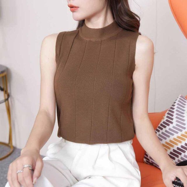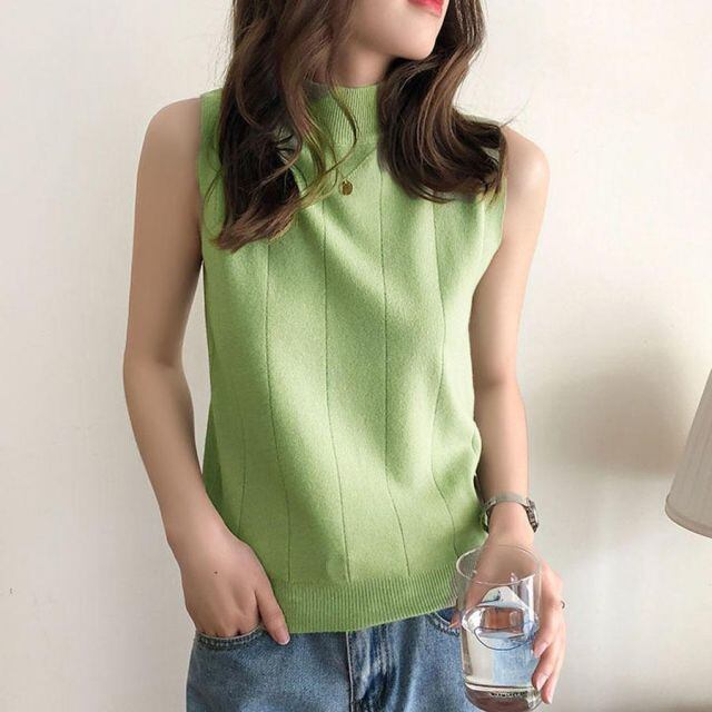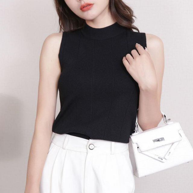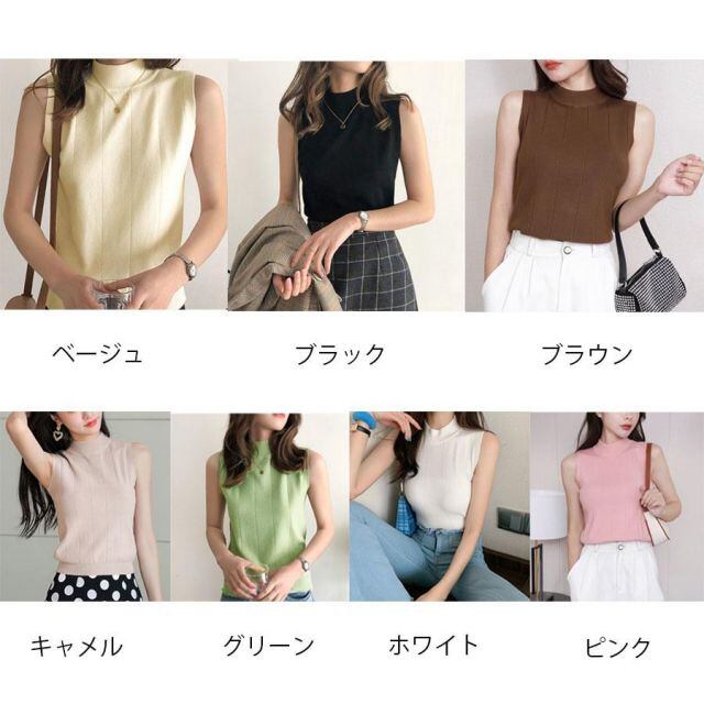 商品名:サマーニット ノースリーブ ハイネック プリーツ ニットソー インナー ニットキャミソール レディース リブニットタンクトップ(メール便送料無料)