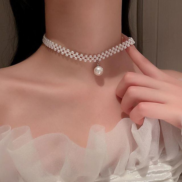 商品名:ネックレス チョーカー フェイクパール ボリューム アクセサリー おしゃれ 調節できる(メール便送料無料)