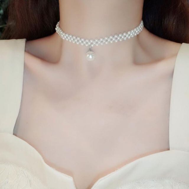 ネックレス チョーカー フェイクパール ボリューム アクセサリー おしゃれ 調節できる(メール便送料無料)