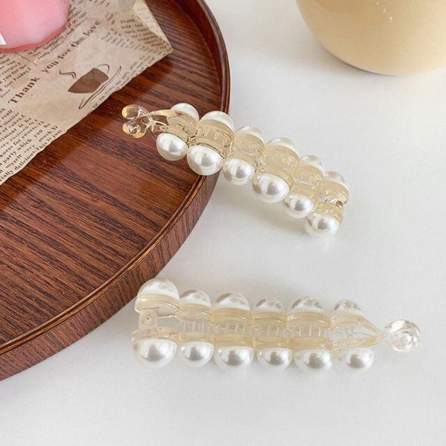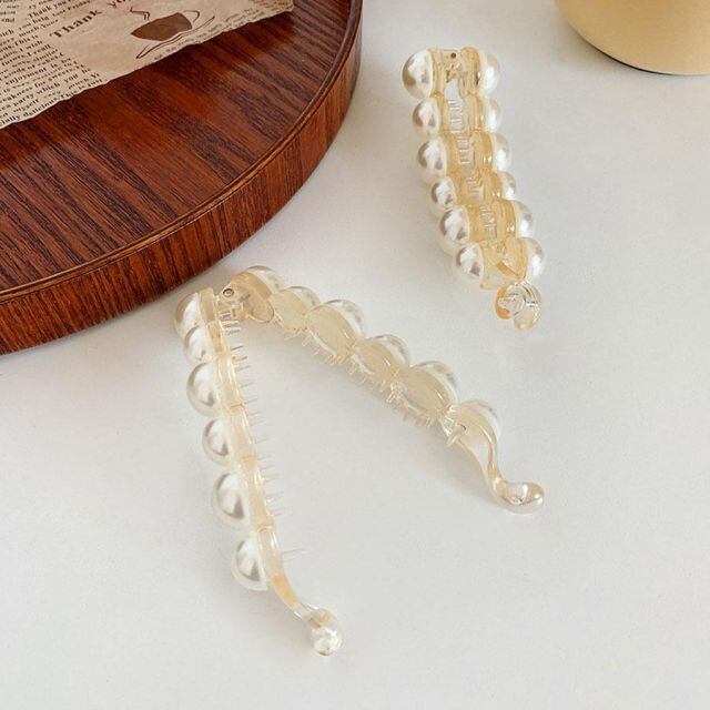 商品名:バナナクリップ ヘアクリップ 大きめ パール ヘアアクセサリー 髪留め 結婚式 パーティ シンプル 人気 まとめ髪 髪飾り 大人かわいい 韓国(メール便送料無料)