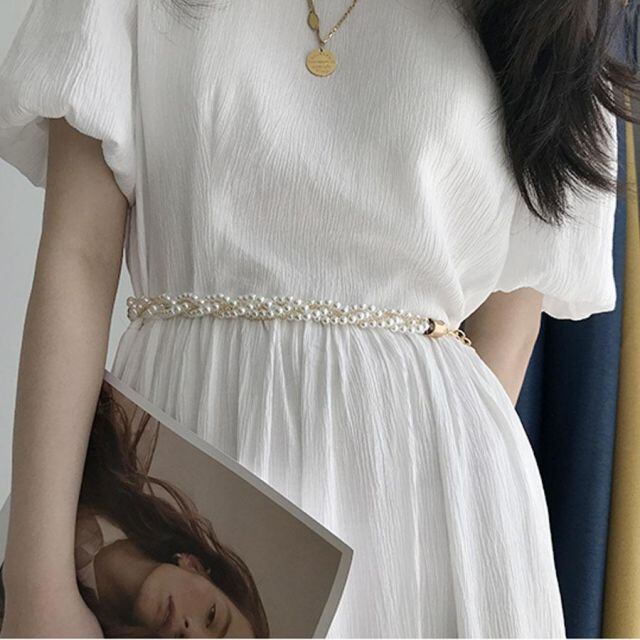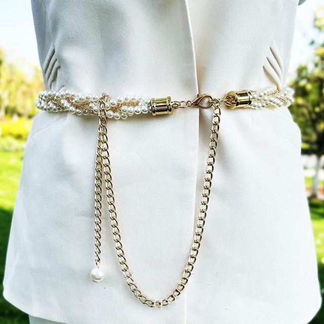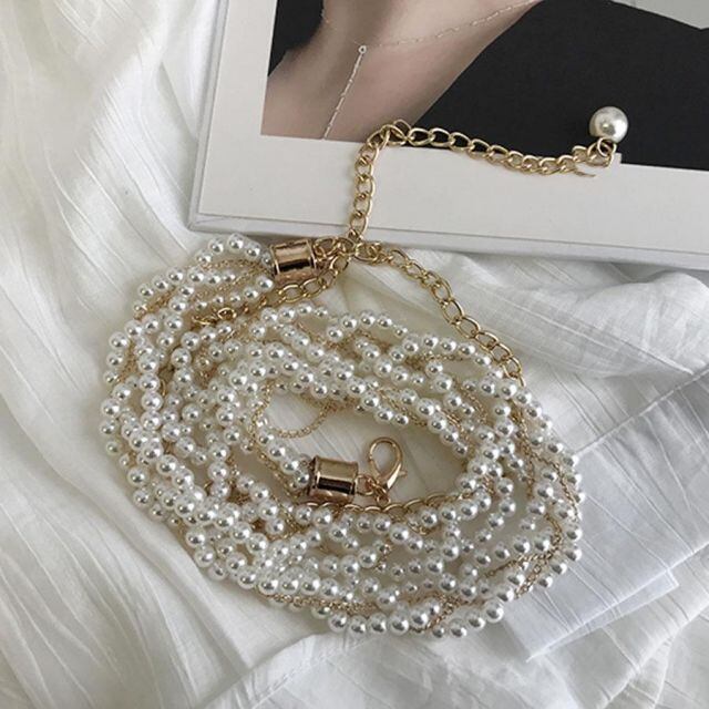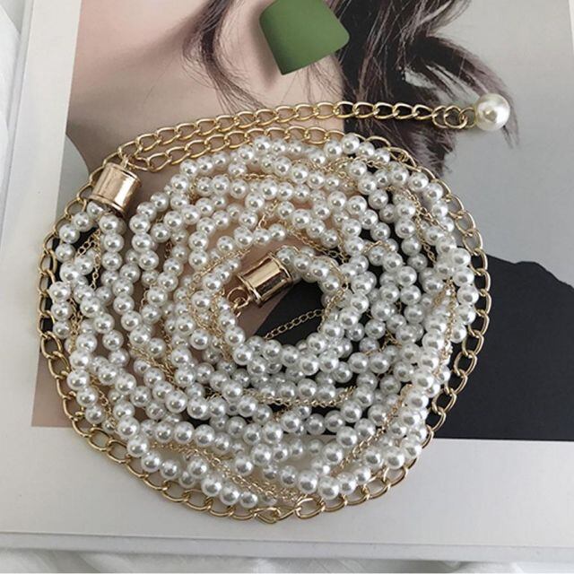 商品名:パールベルト パール チェーンベルト レディース おしゃれ 細ベルト 女性用 合金ベルト 結婚式 ドレス ベルト ウエストマーク(メール便送料無料)