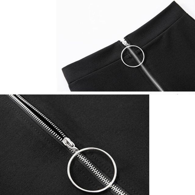リングジップ付きミディアム丈ハイウエストタイトスカート。