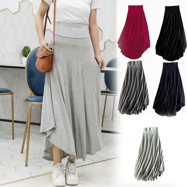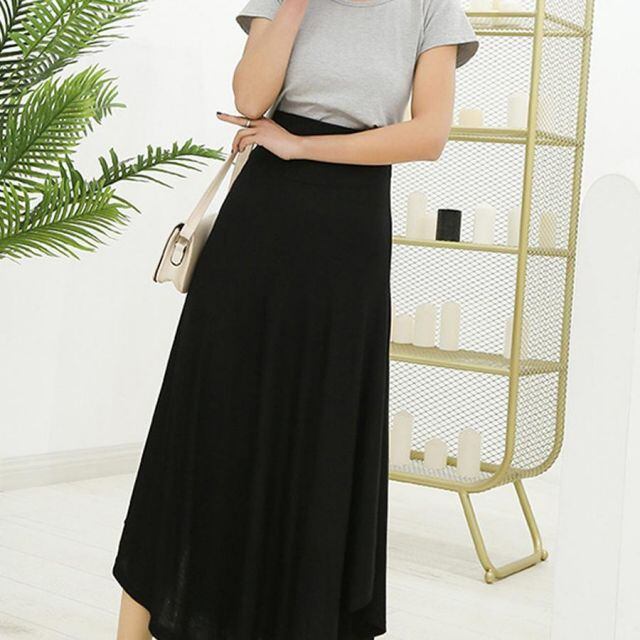 商品名:フレアスカート ロング プリーツスカート 黒 無地スカート ひざ下 ハイウェスト着痩せ 通勤 オシャレ Aラインスカート フレア裾(メール便送料無料)