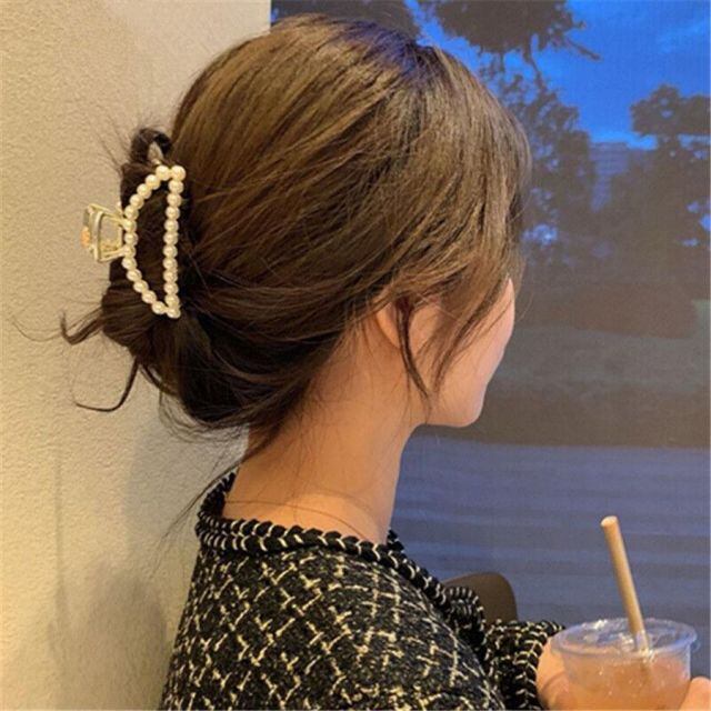 商品名:ヘアクリップ バンスクリップ パール付 シンプル レディース ヘアアクセサリー 髪飾り 髪留め クリップ ハート(宅急便のみ対応)